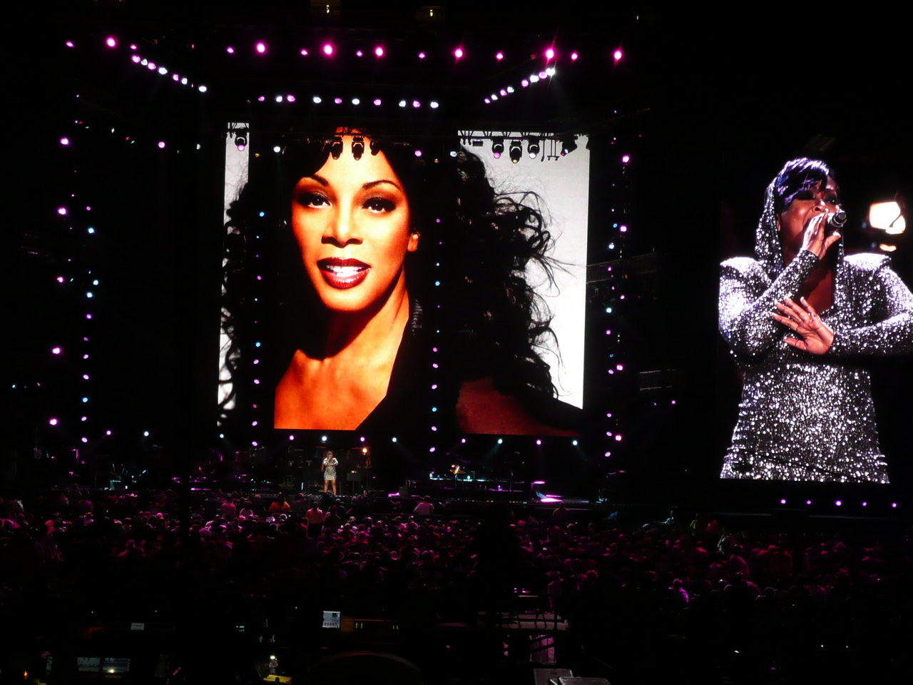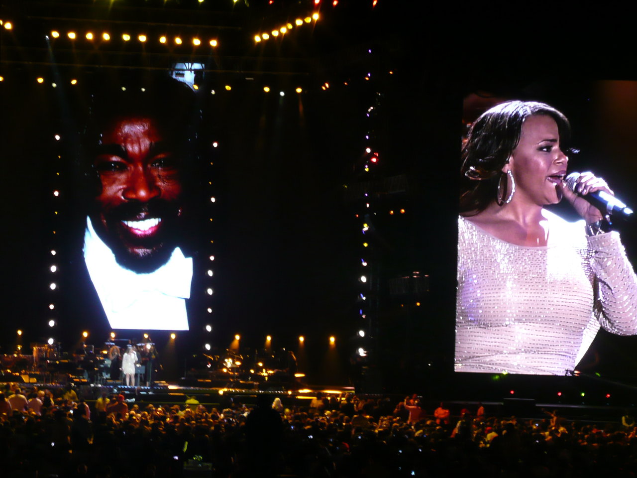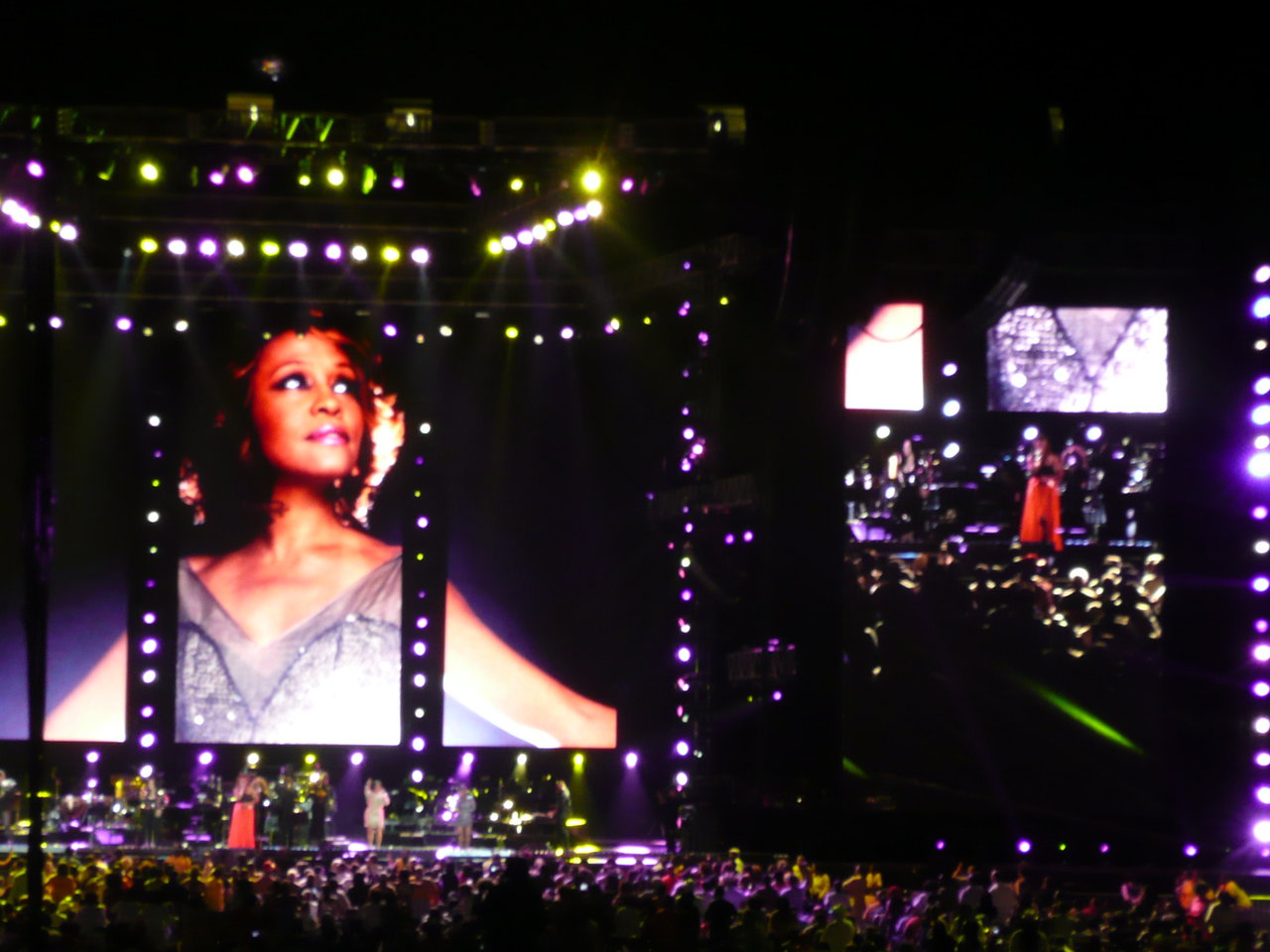 林「確かに(笑)。で、チャカの前には、TV Oneのリアリティ・ショウ『R&B Divas』に出演するモニファ、ニッキー・ギルバート(ブラウンストーン)、シリーナ・ジョンソン、キキ・ワイアット、フェイス・エヴァンスの5人がショウを行うというので、盛大なフィナーレになるのだろうと期待していたわけですが。この1年近くの間に亡くなったR&Bスターの代表曲を5人が歌うというトリビュート・ショウ。モニファが歌うドナ・サマーの“Last Dance”を筆頭に、トリビュートの対象をスクリーンに映し出し、リレー形式で歌っていくという」